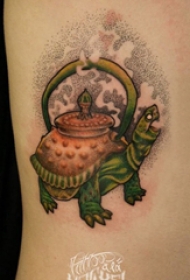 龟刺青 女生侧腰上彩色的乌龟纹身图案