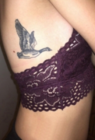 侧腰刺青女 女生侧腰上黑色的大雁纹身图案