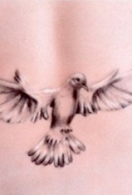 女生后腰刺青 女生后腰上黑色的鸽子纹身图案