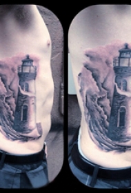 侧腰刺青男 男生侧腰上黑色的灯塔纹身图案