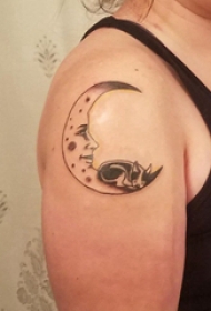刺青月亮女生图片 女生手臂上黑色的月亮纹身图案