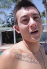 中国刺青明星 陈冠希锁骨上黑色的英文字母纹身图案