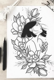 短发女孩手稿刺青图案图片