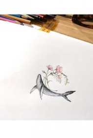 鲸鱼刺青手稿_十几张水彩鲸鱼手稿刺青图案素材图片