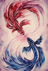 水彩刺青鱼手稿素材欣赏图片