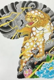 经典彩绘唐狮手稿纹身图案