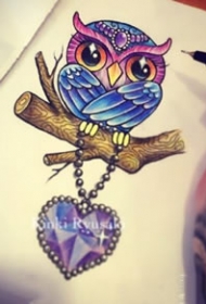 彩色呆萌可爱的猫头鹰手稿纹身图案