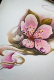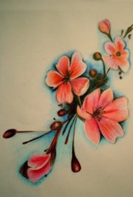 彩绘唯美小樱花手稿纹身图案