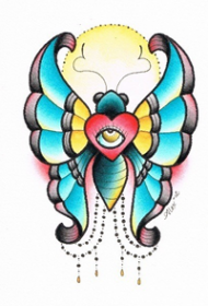 刺青爱好者图库推荐一张彩色蝴蝶手稿纹身图案