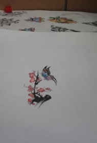 漂亮的梅花蝴蝶手稿刺青图案图片