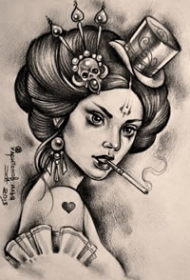 刺青艺妓手稿图 一组柔美迷人的纹艺妓刺青手稿图片