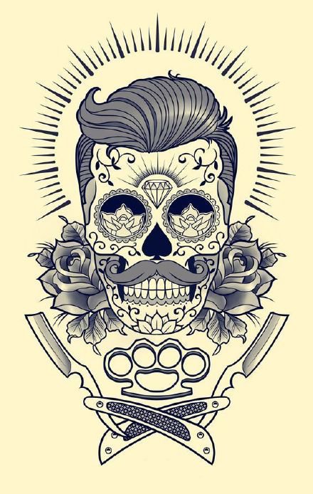 old school骷髅手稿--一组old school骷髅头风格刺青手稿图案图片(7)