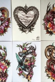 彩绘精美花卉手稿纹身图案