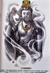 一幅包腿包臂大势至菩萨手稿纹身图案